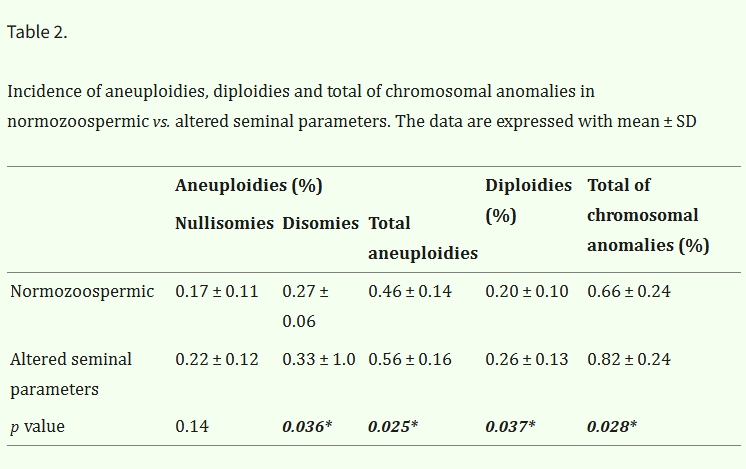 精蟲品質異常之精蟲染色體(18,X,Y)異常機率較高