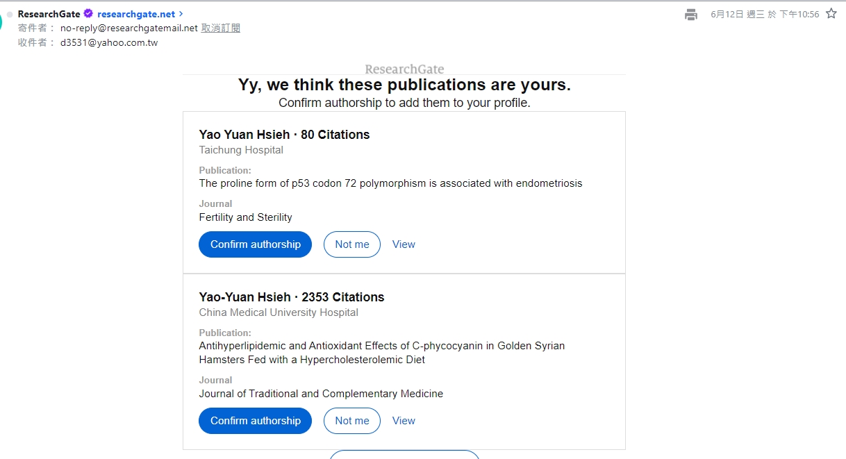 致謝涵: 本人論文被國際期刊引用/台中婦產科推薦/南區婦產科推薦